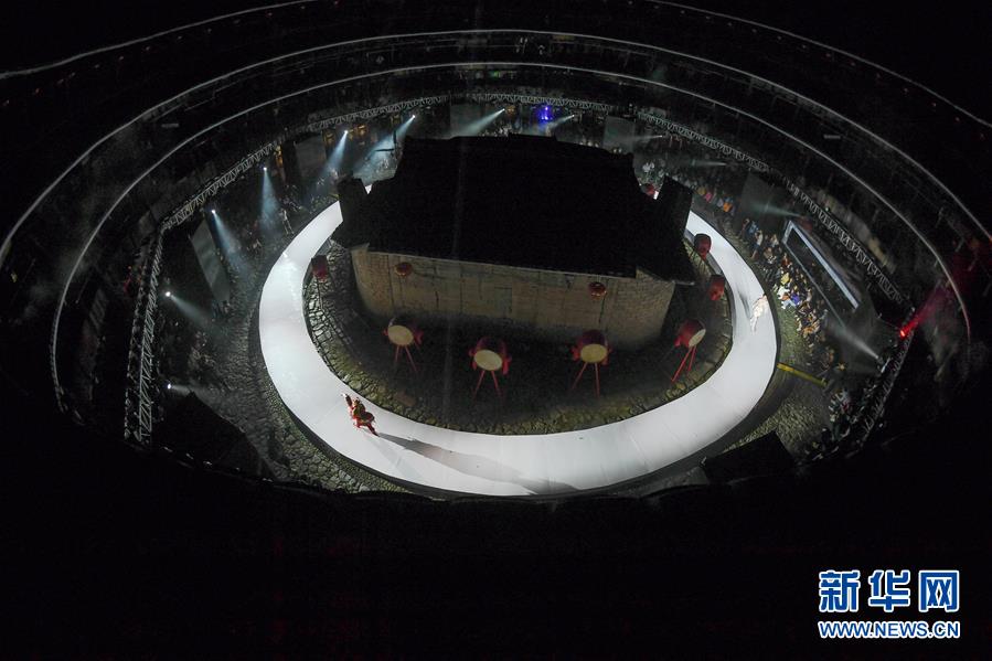 4月27日,小模特身穿民族服飾展示土樓當(dāng)?shù)氐姆俏镔|(zhì)文化遺產(chǎn)竹馬戲。 當(dāng)日,土樓光語國際時(shí)尚大秀在福建省南靖縣的土樓裕昌樓內(nèi)舉行。這場融匯文化、時(shí)尚與旅游元素的大秀,通過傳統(tǒng)與時(shí)尚的有機(jī)融合,展現(xiàn)南靖土樓及文化的魅力和風(fēng)采。 新華社記者魏培全攝