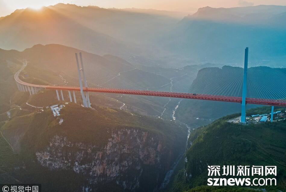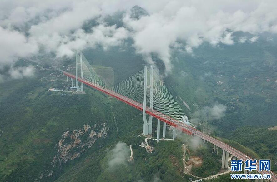 畢都高速公路北盤江大橋是杭瑞高速公路畢都段的控制性工程,位于貴州省和云南省交界處,由貴州省和云南省共建。該橋橋面至江面高差達(dá)565米,成為目前世界第一高橋。主橋?yàn)殇撹炝盒崩瓨颍骺?20米,目前位居同類型橋梁2016年12月29日正式通車。