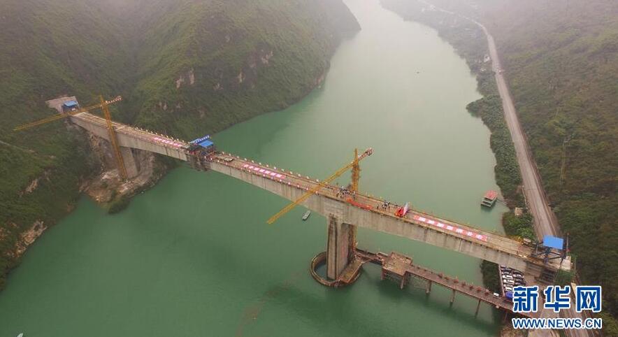 2018年5月30日,云南昭通,鸚哥大橋完成最后一段35米引橋現(xiàn)澆箱梁作業(yè),標(biāo)志著“鸚哥溜索改橋”主體工程完工,進(jìn)入最后階段的橋面鋪裝和防護(hù)欄施工,預(yù)計(jì)6月底建成通車。