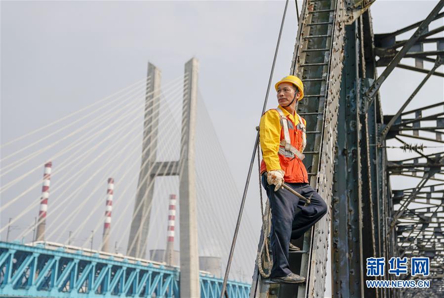 中國(guó)鐵路成都局有限公司重慶工務(wù)段53歲的橋隧工唐金華在白沙沱長(zhǎng)江大橋的作業(yè)點(diǎn)上望著新白沙沱長(zhǎng)江特大橋(4月23日攝)。 4月23日下午5點(diǎn)40分,隨著重慶白沙沱長(zhǎng)江大橋通行的最后一列客運(yùn)列車順利通過(guò),這座“服役”了59年的重慶首座長(zhǎng)江大橋進(jìn)入“退役”倒計(jì)時(shí)。4月24日后,所有列車將改線經(jīng)距白沙沱長(zhǎng)江大橋約100米的新白沙沱長(zhǎng)江特大橋通行,新橋“接力”老橋,運(yùn)輸能力將得到大幅提升。 白沙沱長(zhǎng)江大橋于1958年開(kāi)工,1960年通過(guò)首趟列車,是繼武漢長(zhǎng)江大橋之后的第二座長(zhǎng)江大橋。 新華社記者 劉潺 攝