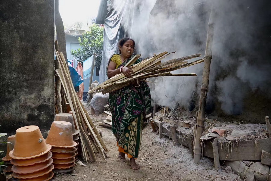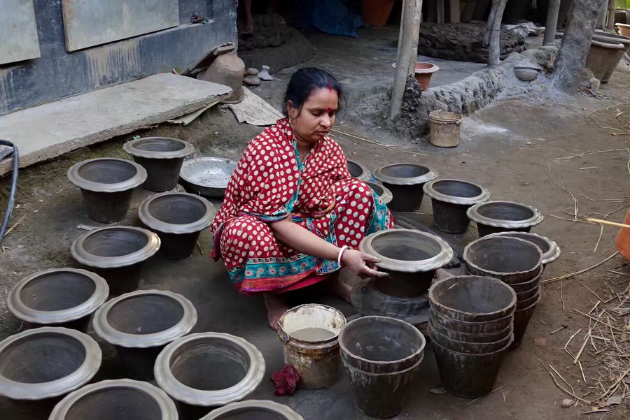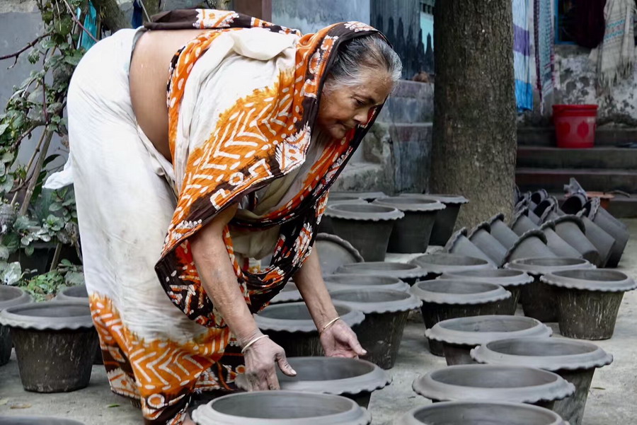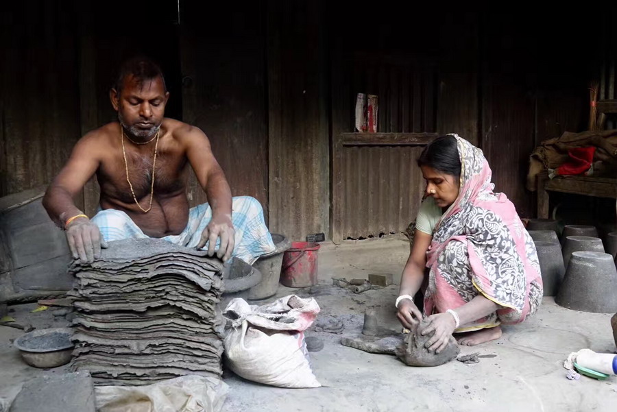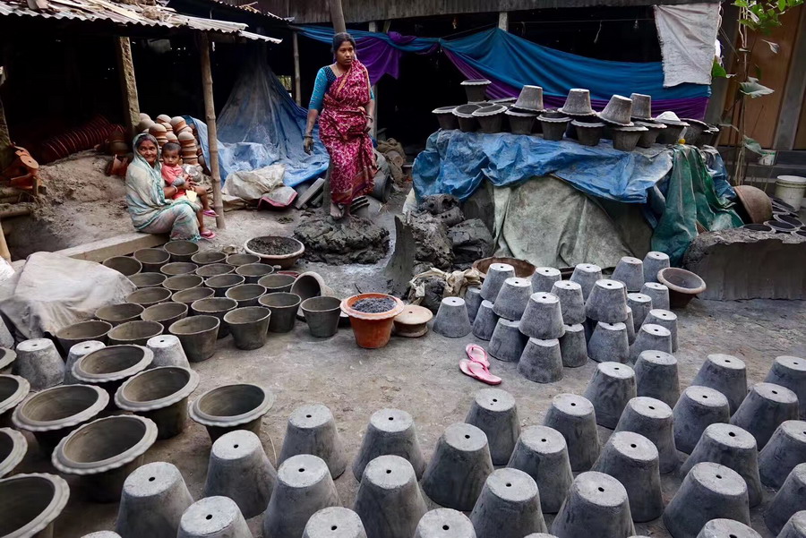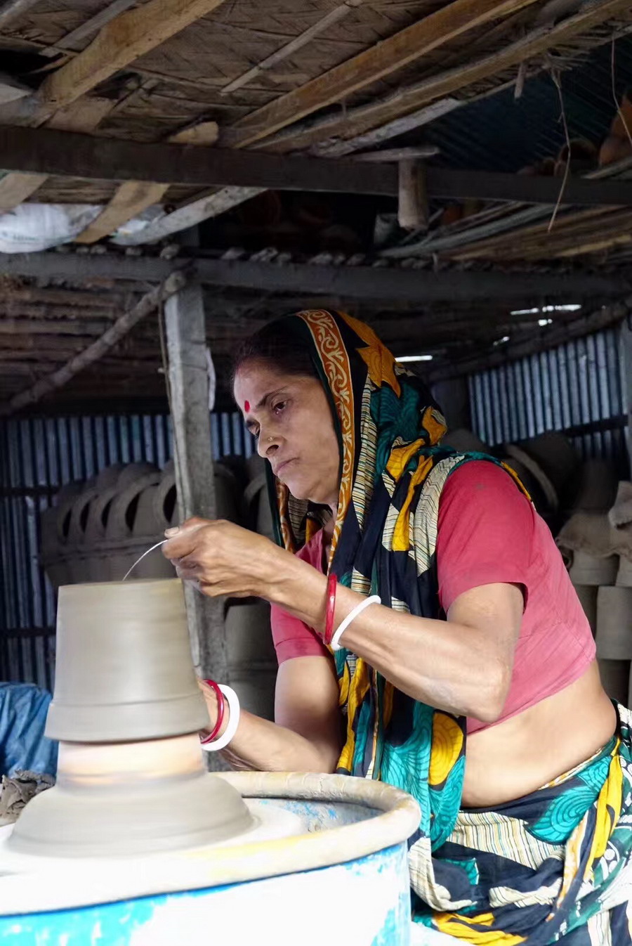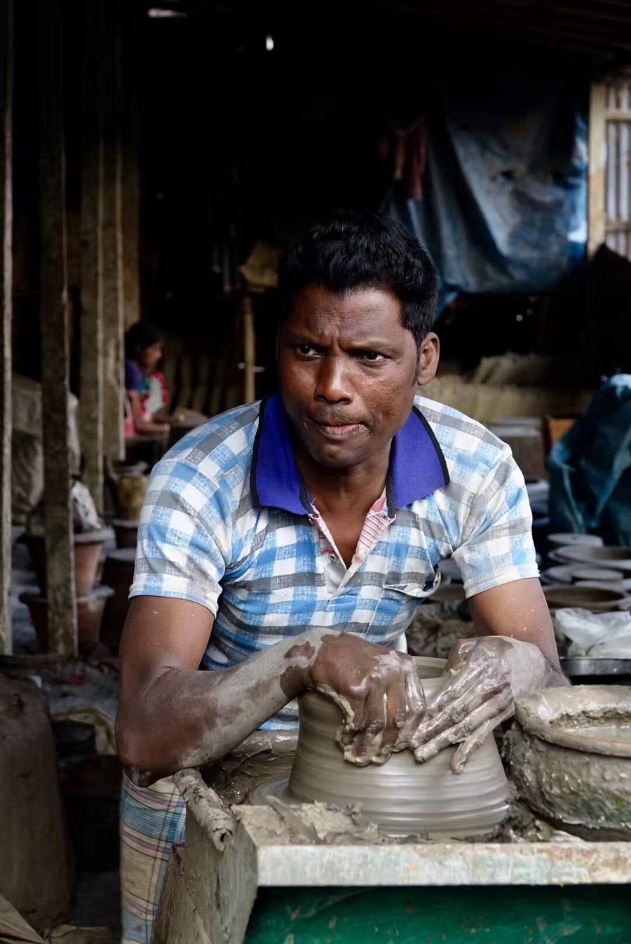 達(dá)卡遠(yuǎn)郊區(qū)一個(gè)印度教徒聚居的村莊,幾乎家家戶戶都開(kāi)辦制陶作坊,以傳統(tǒng)工藝制作陶盆、陶罐、陶盤(pán)和建筑裝飾陶器,遠(yuǎn)銷孟加拉國(guó)內(nèi)各地。李仁奇 攝
