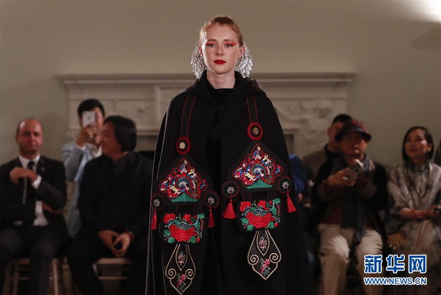 5月8日,一名模特在英國倫敦走秀。 由浙江省文化和旅游廳舉辦的浙江傳統(tǒng)工藝創(chuàng)新展8日在倫敦開幕。為期4天的展覽是第五屆倫敦手工藝周的重要活動之一。 新華社記者 韓巖 攝