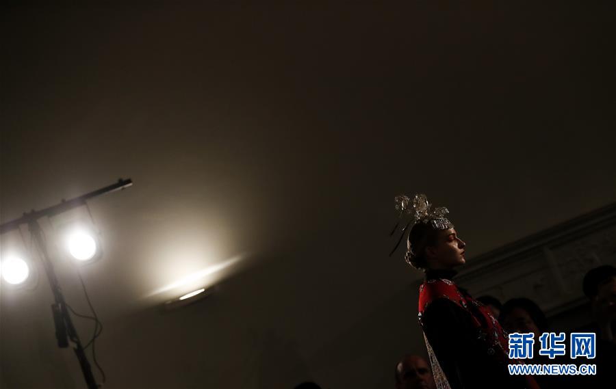 5月8日,一名模特在英國(guó)倫敦走秀。 由浙江省文化和旅游廳舉辦的浙江傳統(tǒng)工藝創(chuàng)新展8日在倫敦開幕。為期4天的展覽是第五屆倫敦手工藝周的重要活動(dòng)之一。 新華社記者 韓巖 攝