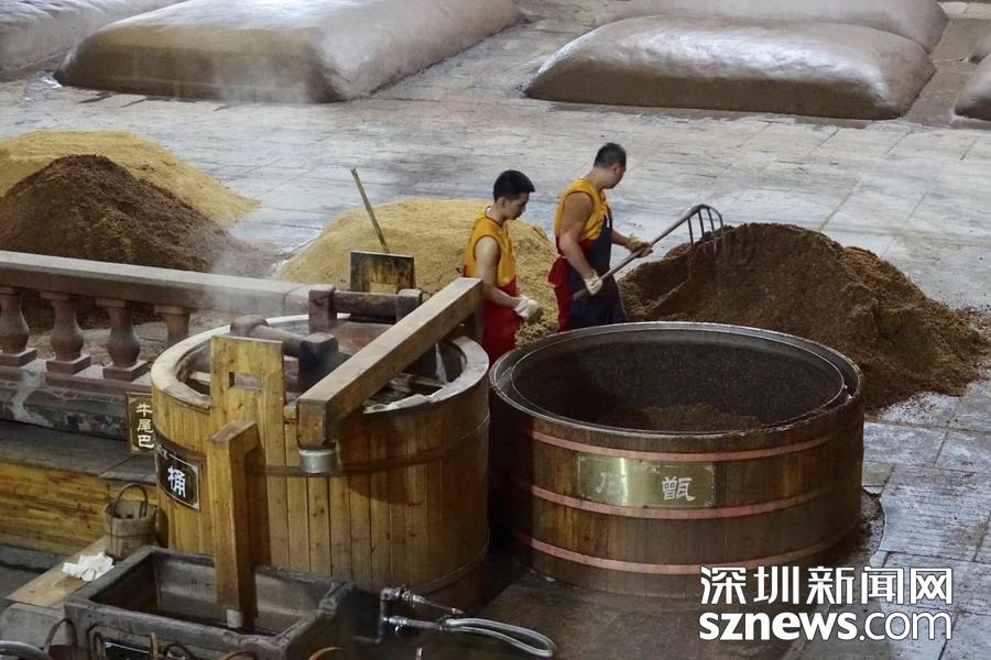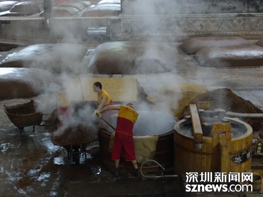 瀘州老窖酒是以泥窖為發(fā)酵容器,中高溫曲為產(chǎn)酒、生香劑,高梁等糧谷為釀酒原料,開(kāi)放式操作生產(chǎn),多菌密閉共酵,續(xù)糟配料循環(huán),常壓固態(tài)甑桶蒸餾、精心陳釀勾兌等工藝釀制的白酒,以己酸乙醇為主體香味物質(zhì)?!盀o州老窖酒傳統(tǒng)釀造技藝”由大曲制造、原酒釀造、原酒陳釀、勾兌嘗評(píng)等多方面的技藝。李仁奇 攝