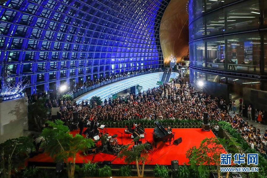5月19日凌晨,觀眾在國家大劇院公共空間欣賞小野麗莎“午夜玫瑰”爵士樂專場音樂會。 5月18日晚,作為亞洲文化展演活動的演出之一,著名爵士歌手小野麗莎攜樂團(tuán)首次登臺國家大劇院,亮相“午夜玫瑰”爵士樂專場音樂會。 新華社記者 張玉薇 攝
