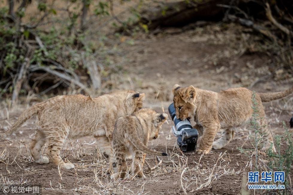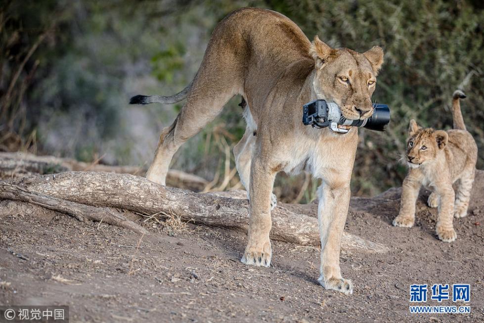 近日,非洲博茨瓦納馬沙圖野生動(dòng)物保護(hù)區(qū)內(nèi)一頭獅子叼起攝影師掉落在地上的相機(jī),之后還將相機(jī)交給小獅子們玩耍,看起來(lái)十分好奇,而攝影師非常無(wú)奈?,F(xiàn)年57歲的叢林探險(xiǎn)家Barbara Jensen Vorster在一輛越野車(chē)上為馬沙圖野生動(dòng)物保護(hù)區(qū)的獅群拍照時(shí),相機(jī)不小心掉到了地上。砰的一聲響驚動(dòng)了母獅子,它向攝影師方向移動(dòng),迫使探險(xiǎn)隊(duì)撤退。(圖片來(lái)源:視覺(jué)中國(guó))