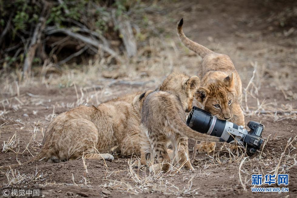 近日,非洲博茨瓦納馬沙圖野生動物保護區(qū)內(nèi)一頭獅子叼起攝影師掉落在地上的相機,之后還將相機交給小獅子們玩耍,看起來十分好奇,而攝影師非常無奈?,F(xiàn)年57歲的叢林探險家Barbara Jensen Vorster在一輛越野車上為馬沙圖野生動物保護區(qū)的獅群拍照時,相機不小心掉到了地上。砰的一聲響驚動了母獅子,它向攝影師方向移動,迫使探險隊撤退。(圖片來源:視覺中國)