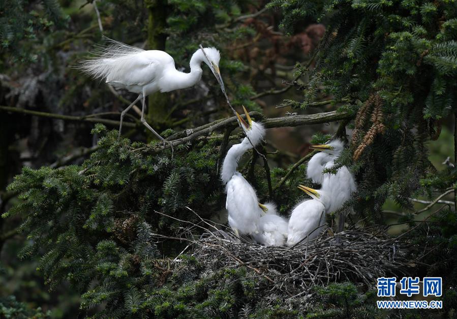 在江西省南昌市新建區(qū)象山森林公園內,白鷺和自己的雛鳥在一起(5月21日攝)。 近日,在江西省南昌市新建區(qū)象山森林公園內,已安家筑巢的大批鷺鳥陸續(xù)孵化出了后代。象山森林公園有著“鷺鳥王國”的美譽,生態(tài)環(huán)境良好,每年都會吸引白鷺、蒼鷺、夜鷺等種類的鷺鳥飛抵棲息和繁衍后代。 新華社記者 彭昭之 攝