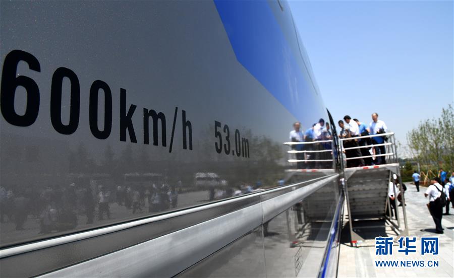 5月23日,參觀人員登上時速600公里高速磁浮試驗樣車參觀。