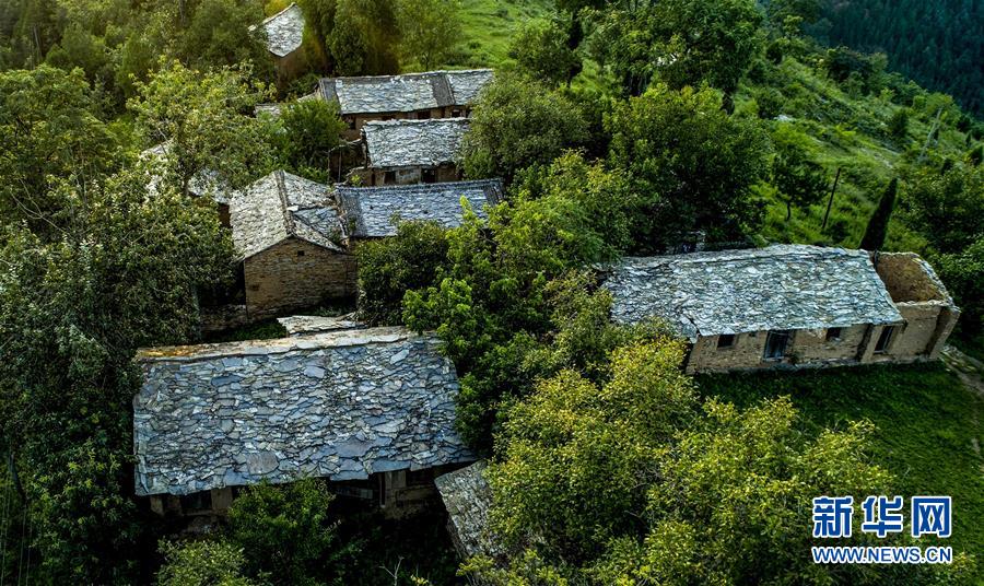 掩映在大山之中的石板房古村落,人去房空(8月7日無人機拍攝)。