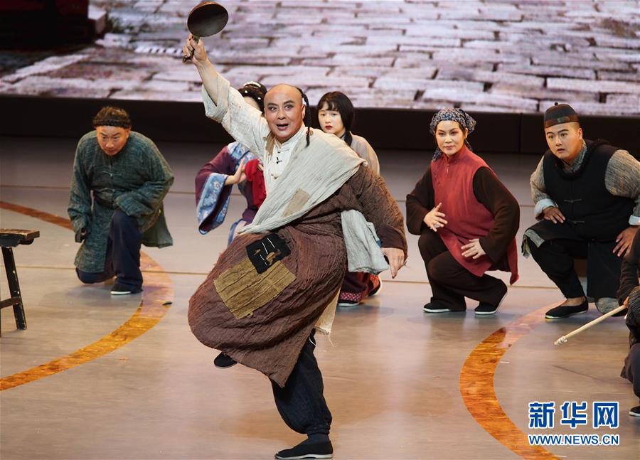6月2日,獲得文華表演獎的演員梁偉平在第十二屆中國藝術(shù)節(jié)閉幕式上匯報演出淮劇《武訓(xùn)先生》選段。 新華社記者 任瓏 攝