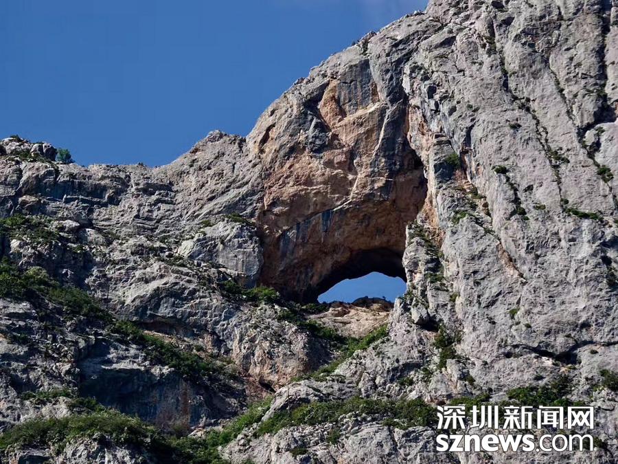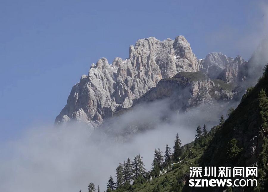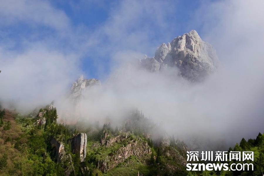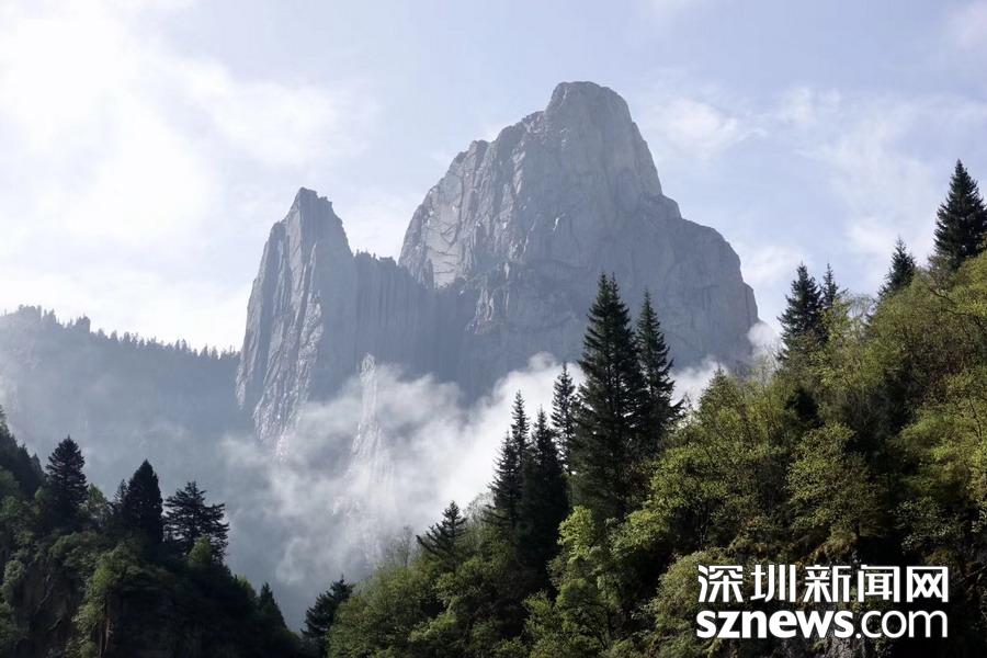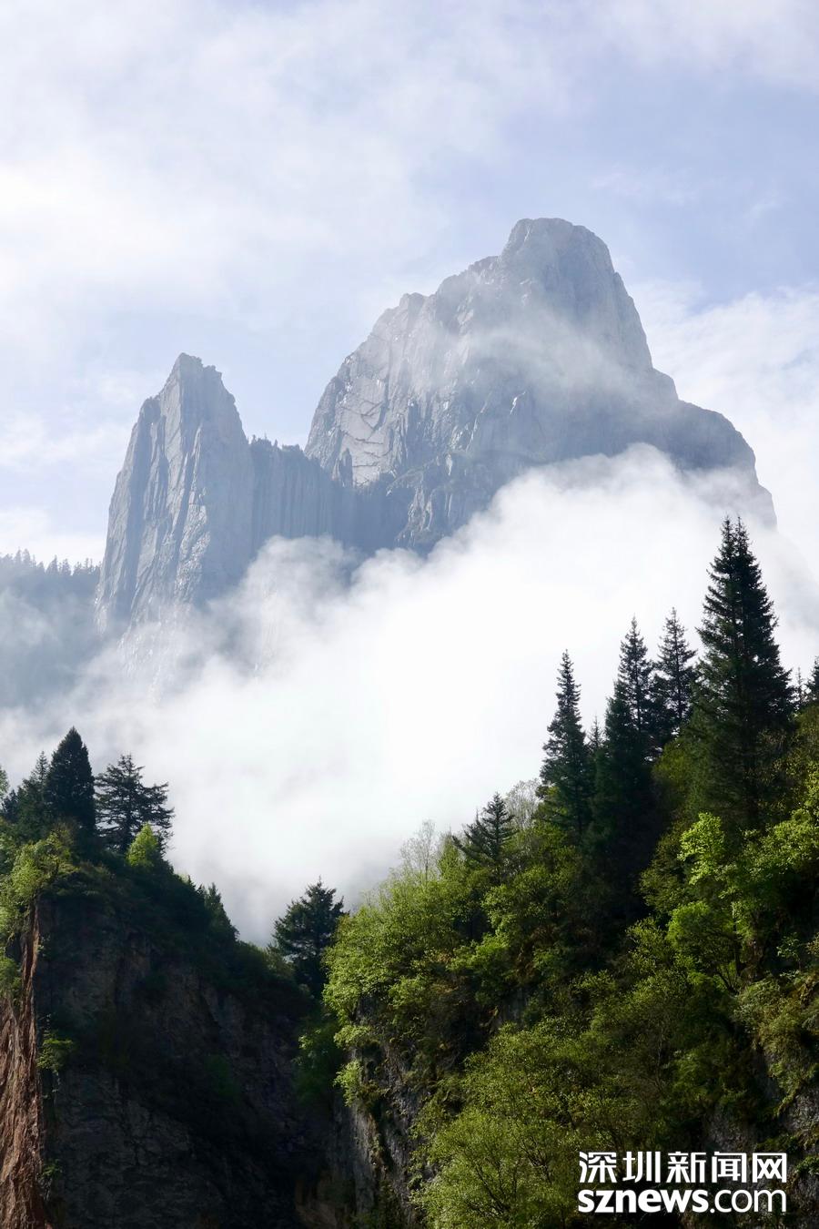 乘坐通往核心景區(qū)的旅游車進(jìn)入臨近壯觀山體的地段,從獨(dú)特的角度看到了云霧繚繞的山峰,真有置身仙境的感覺(jué)。李仁奇攝