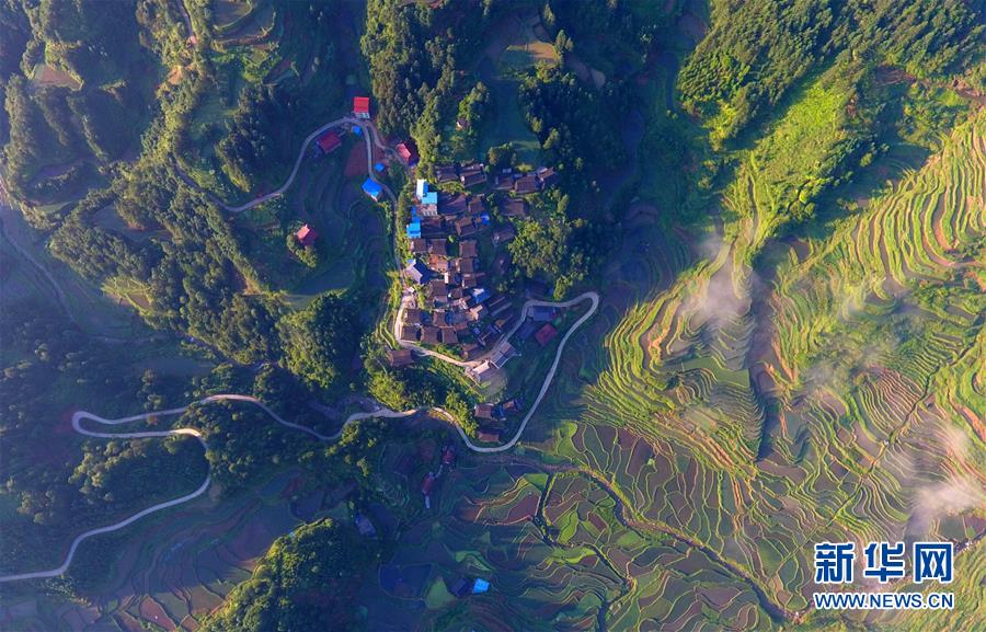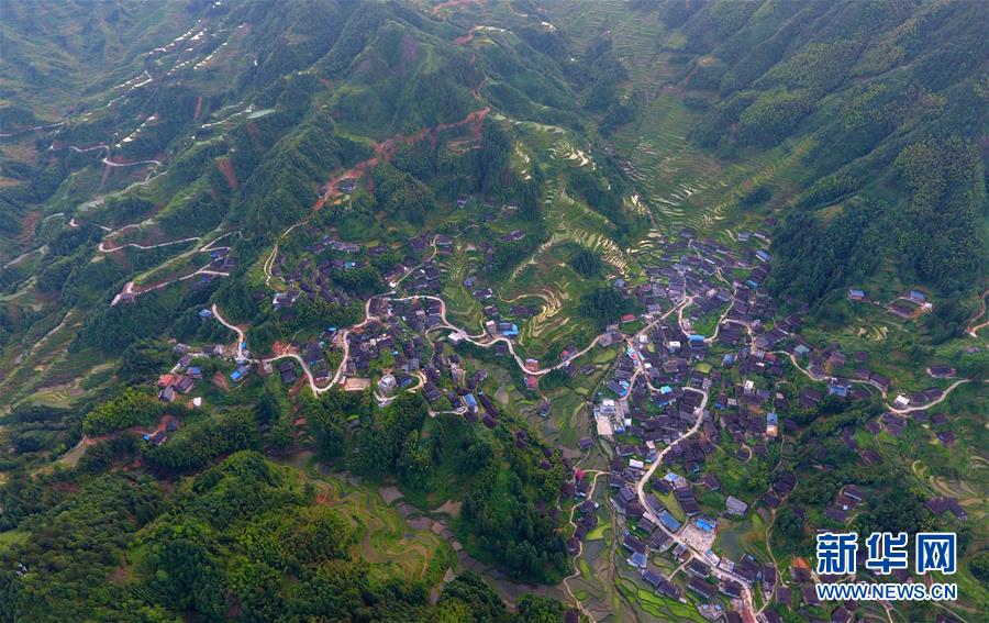 在融水苗族自治縣桿洞鄉(xiāng)黨鳩村下黨鳩屯,道路已經(jīng)修到家家戶戶門前(6月21日無人機(jī)拍攝)。新華社記者 黃孝邦 攝