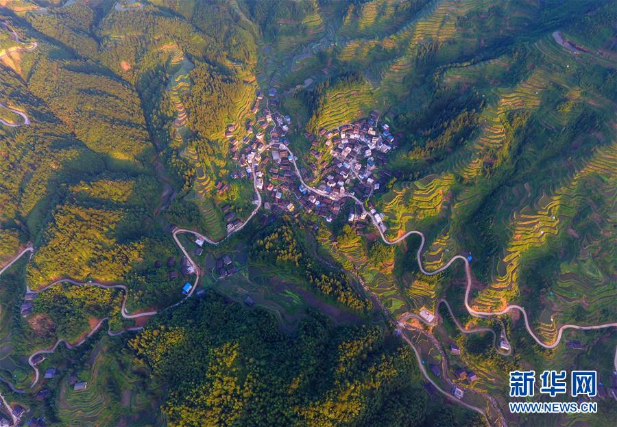 這是融水苗族自治縣桿洞鄉(xiāng)黨鳩村烏英苗寨的公路(4月18日無人機(jī)拍攝)。新華社記者 黃孝邦 攝