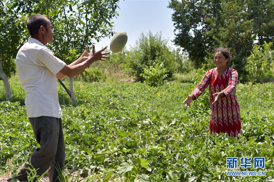 6月23日,新疆喀什地區(qū)巴楚縣的瓜農(nóng)在采摘成熟的留香瓜。新華社記者 丁磊 攝