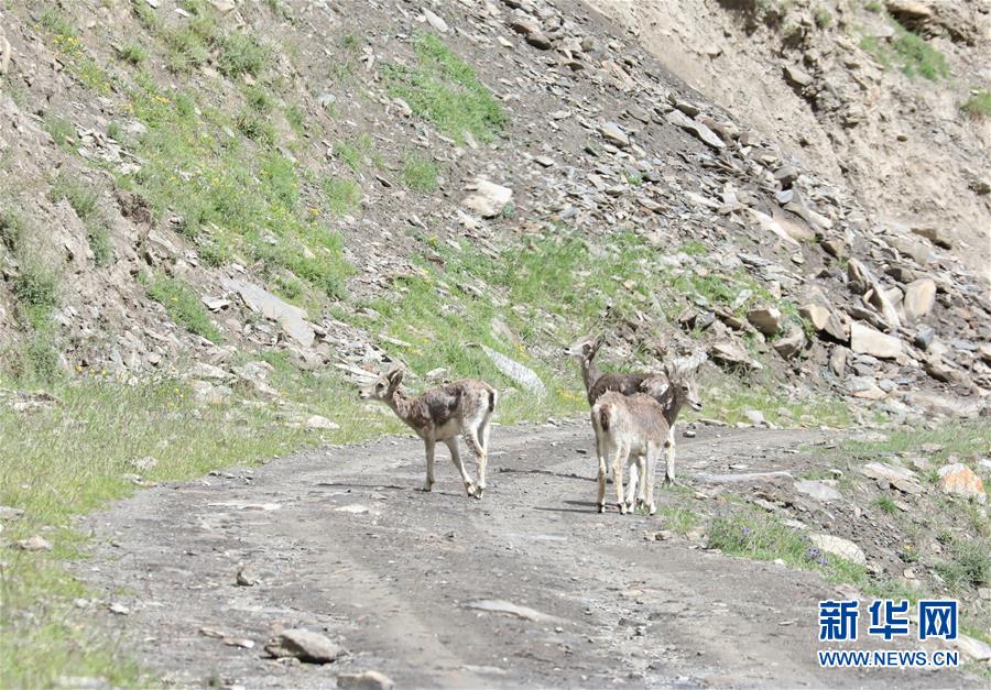 三只巖羊行走在路上(8月14日攝)。 8月12日至14日,來(lái)自全國(guó)各地的31名自然愛好者聚集在海拔4200米的青海省玉樹藏族自治州稱多縣嘉塘草原,參加“2019嘉塘自然觀察節(jié)”。自然愛好者用獨(dú)特視角記錄珍稀野生動(dòng)植物,觀察三江源生態(tài)。 新華社記者 田文杰 攝