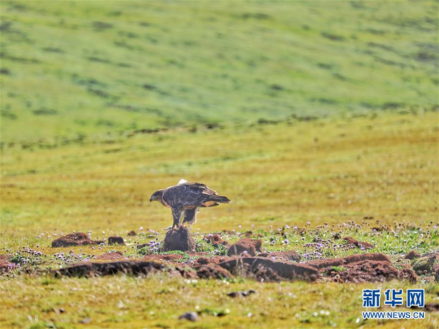 一只大鵟準(zhǔn)備享用捕獲的獵物(8月14日攝)。 8月12日至14日,來(lái)自全國(guó)各地的31名自然愛(ài)好者聚集在海拔4200米的青海省玉樹(shù)藏族自治州稱多縣嘉塘草原,參加“2019嘉塘自然觀察節(jié)”。自然愛(ài)好者用獨(dú)特視角記錄珍稀野生動(dòng)植物,觀察三江源生態(tài)。 新華社記者 張大川 攝