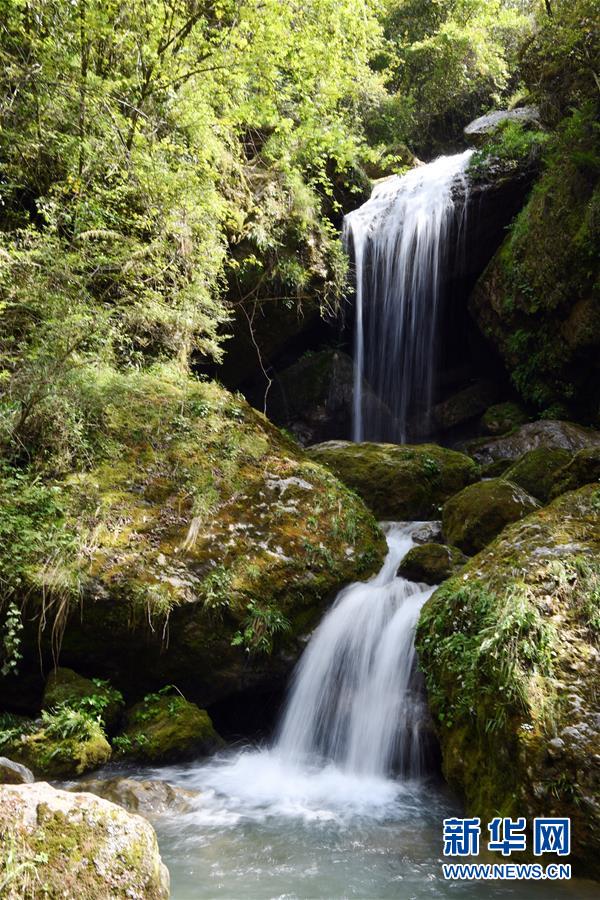 地洞河天坑底部的一處瀑布。位于陜西省漢中市寧強(qiáng)縣的地洞河天坑,是禪家?guī)r天坑群中規(guī)模最大的一處天坑,坑內(nèi)分布有石鐘乳、石筍,具有極高的地質(zhì)研究?jī)r(jià)值。新華社 張博文 攝