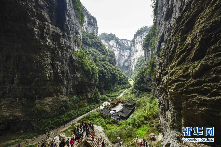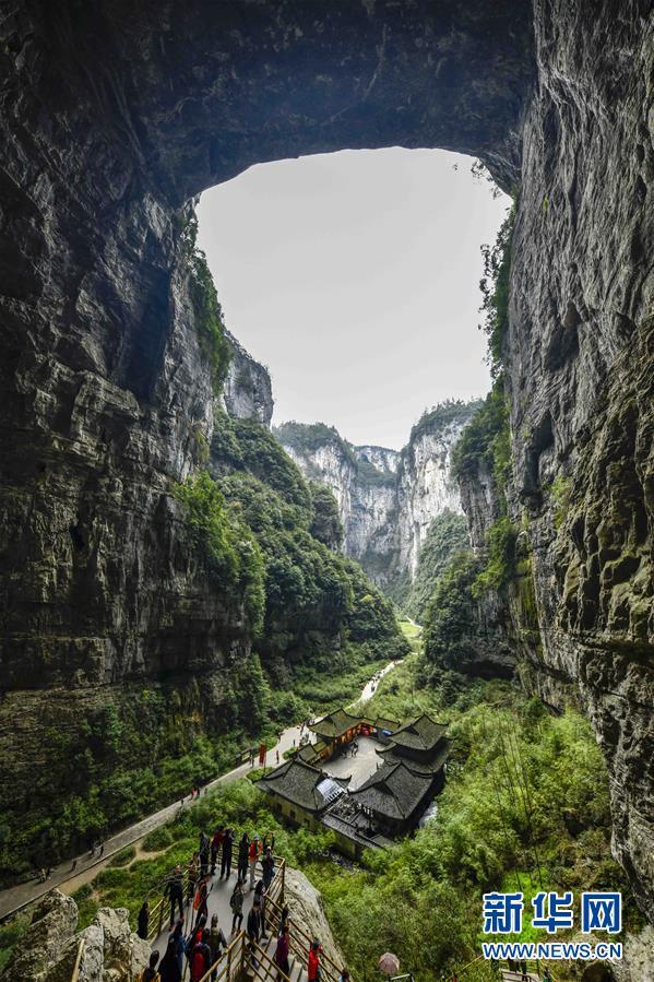游客在天生三橋景區(qū)游覽(3月27日攝)。 隨著天氣轉(zhuǎn)暖,重慶武隆天生三橋景區(qū)風(fēng)景如畫,氣勢(shì)磅礴的天生石橋和綠意盎然的山林相映成趣,吸引眾多游客前來踏春賞景。 新華社記者劉潺攝