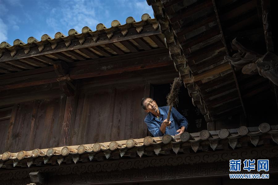 在廣西融安縣大良鎮(zhèn)古蘭村古蘭屯,村民在修繕古民居(8月18日攝)。 新華社記者 黃孝邦 攝