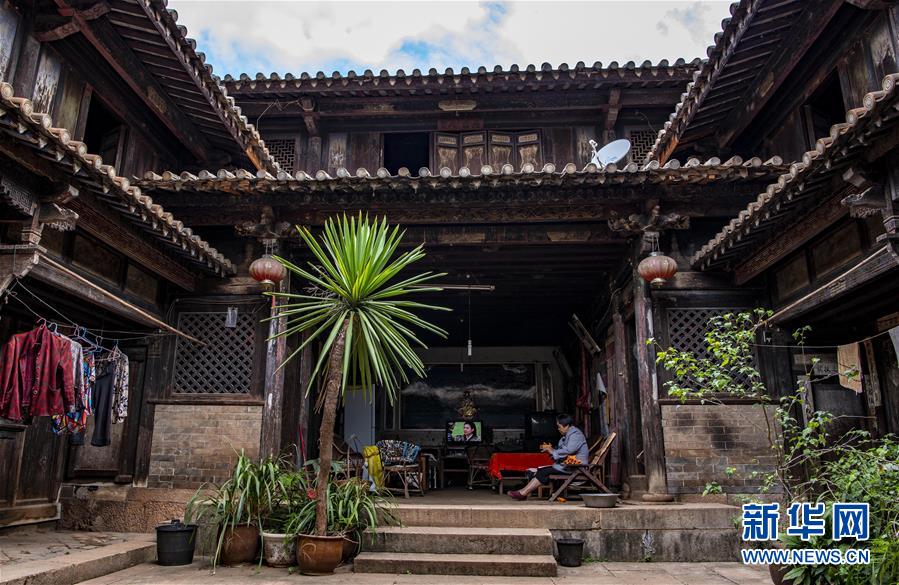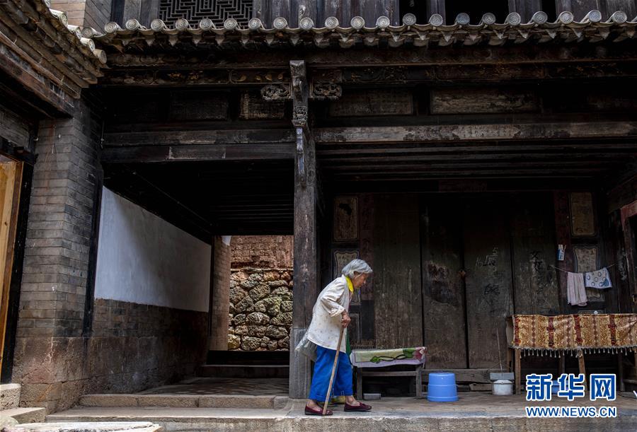 85歲的村民周秀芹走進(jìn)位于石屏縣異龍鎮(zhèn)符家營(yíng)村140號(hào)的家中(8月8日攝)。新華社記者 江文耀 攝