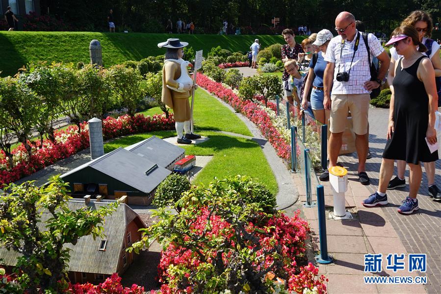 8月25日,在荷蘭海牙馬德羅丹公園,人們參觀微縮建筑。  新華社記者 林立平 攝