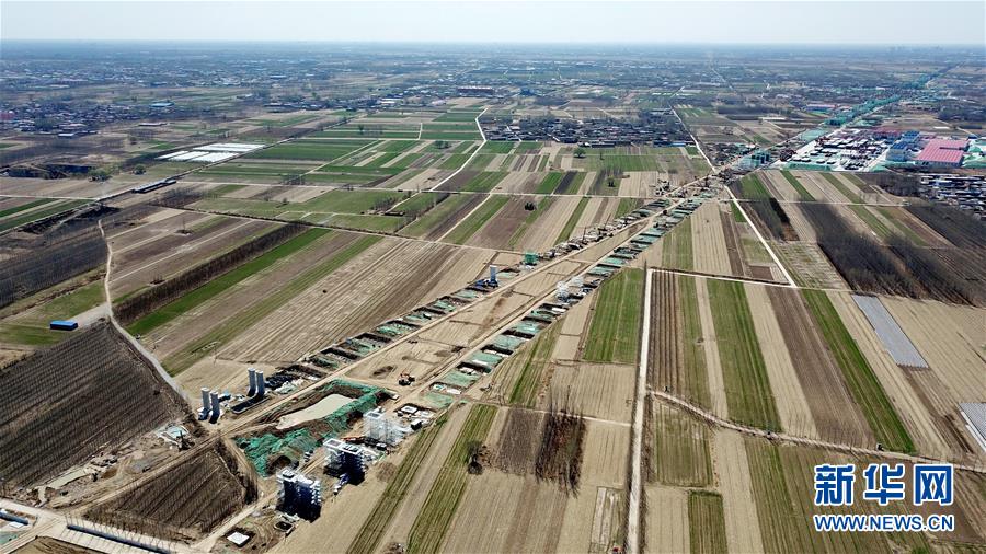 這是京雄城際鐵路施工現(xiàn)場(chǎng)(3月21日無(wú)人機(jī)拍攝)。新華社記者牟宇攝