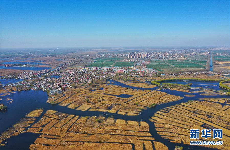 4月1日無(wú)人機(jī)拍攝的雄安新區(qū)白洋淀。