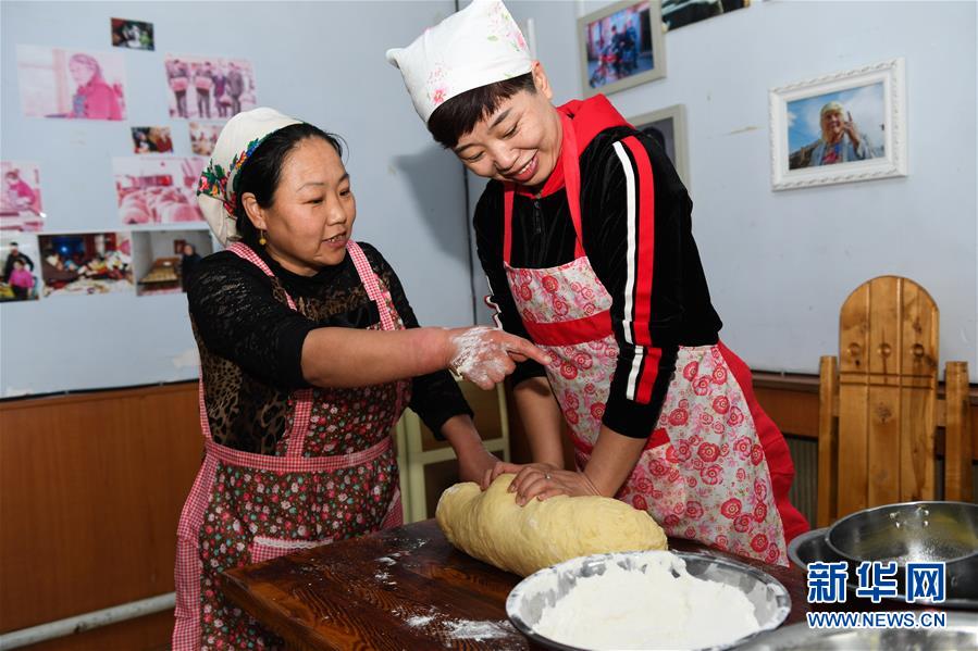 8月27日,付艷梅在列巴房教一名學(xué)徒揉面團。新華社記者劉磊攝