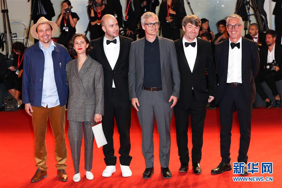 9月3日,在意大利威尼斯,威尼斯電影節(jié)主競(jìng)賽單元影片《關(guān)于無盡》部分主創(chuàng)人員亮相首映紅毯。 新華社記者 張鋮 攝
