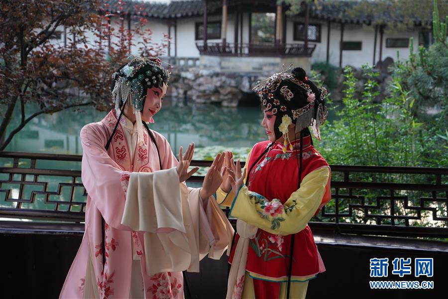 昆劇演員在蘇州網師園排練(5月22日攝)。 新華社記者 季春鵬 攝