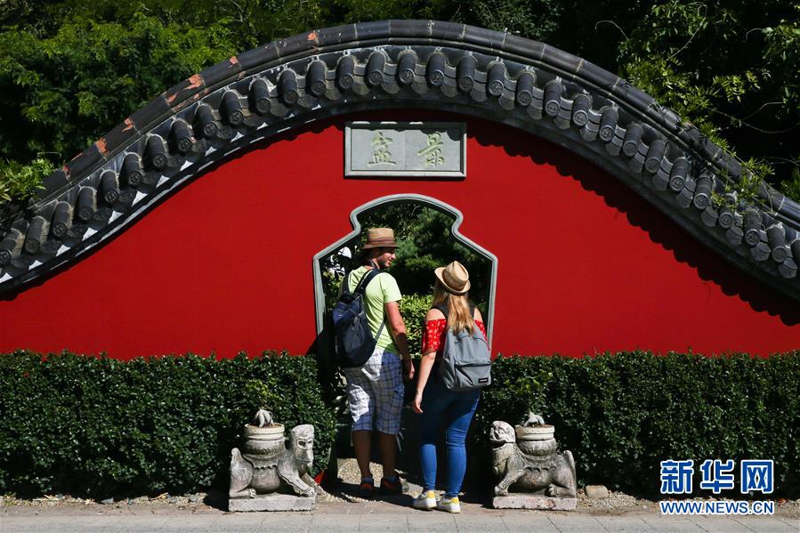 8月24日,在比利時(shí)布呂熱萊特市,游客參觀天堂動(dòng)物園的“中國(guó)園”。新華社記者 鄭煥松 攝