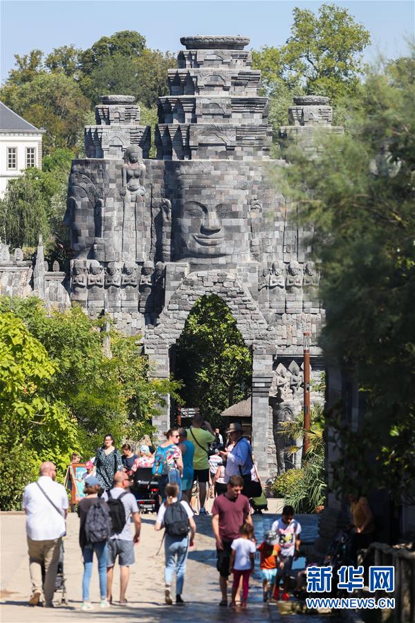 8月24日,在比利時布呂熱萊特市,游客在天堂動物園具有東南亞風情的園林區(qū)游玩。新華社記者 鄭煥松 攝