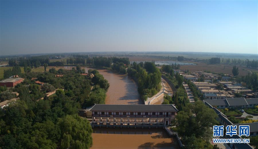 寧夏引黃古灌區(qū)唐正閘。2017年10月寧夏引黃古灌區(qū)入選世界灌溉工程遺產(chǎn),這也是黃河干流上的首個(gè)世界灌溉工程遺產(chǎn)(9月1日無人機(jī)拍攝)。新華社記者劉詩平攝