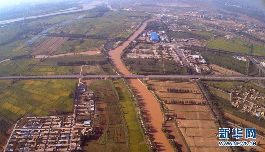 青銅峽市境內(nèi)的黃河(9月3日無人機(jī)拍攝)。新華社記者劉詩平攝