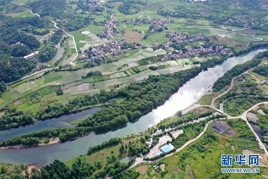 這是槎灘陂水利灌溉工程一景(5月29日無人機(jī)拍攝)。新華社記者彭昭之?dāng)z