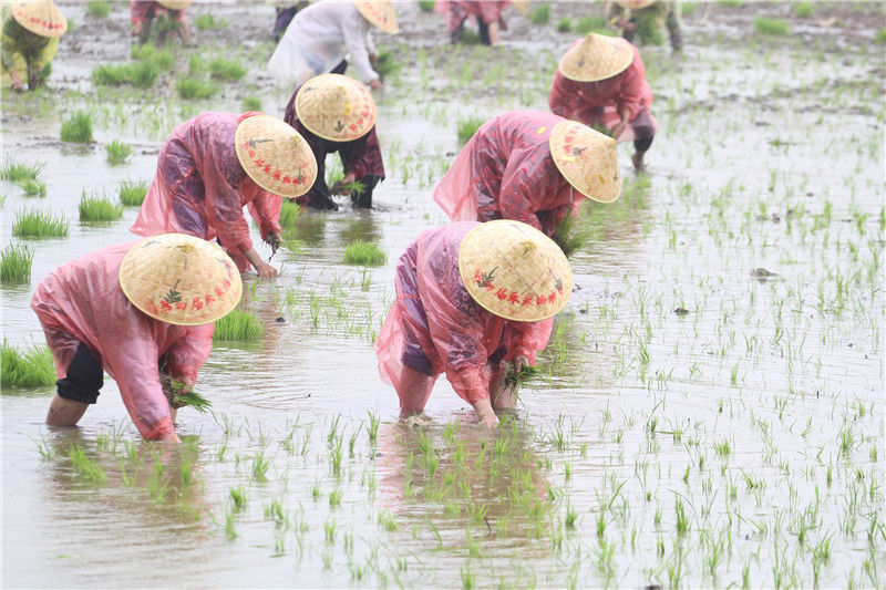 2019年5月26日,江蘇淮安市洪澤區(qū)岔河鎮(zhèn)舉辦“插秧節(jié)”活動,游客通過手工插秧比賽、親子插秧體驗、稻田抓魚、稻田拔河等趣味游戲體驗農耕樂趣,感受田園生活。陳凱/視覺中國 編輯/陳進