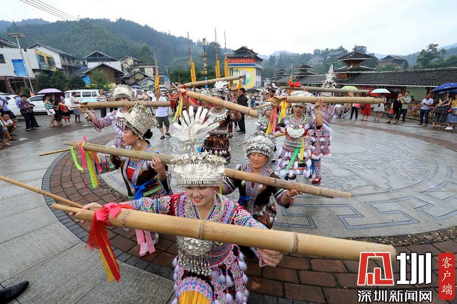 2019年7月8日,當日是農歷六月初六,廣西柳州市融安縣長安鎮(zhèn)安寧村大袍屯苗族村寨舉行一年一度的苗族“鬧魚節(jié)”,祈福豐收。