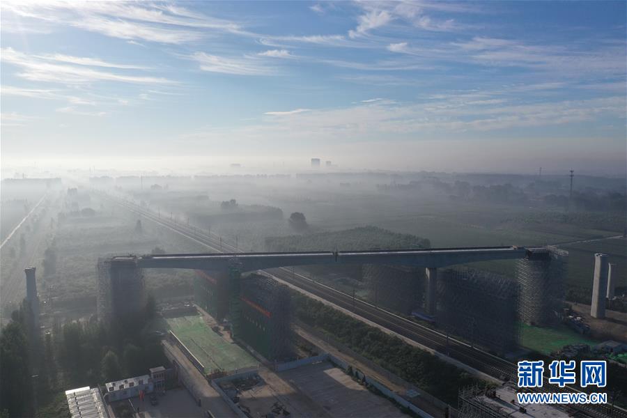 這是8月27日晨無人機拍攝的轉體完成的橋梁。新華社記者邢廣利攝