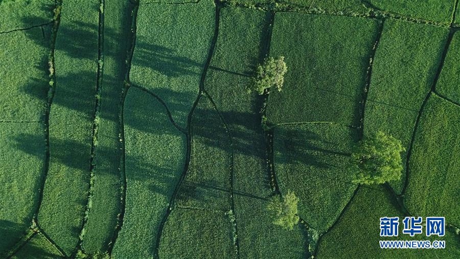 這是8月4日無人機(jī)拍攝的安徽黟縣宏村風(fēng)景區(qū)附近的農(nóng)田晨景。新華社記者張端攝