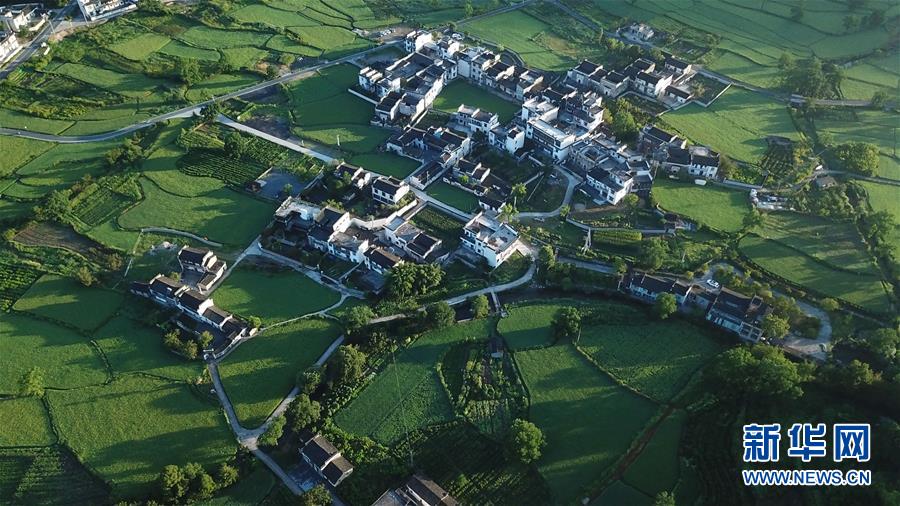 這是8月4日無(wú)人機(jī)拍攝的安徽黟縣宏村風(fēng)景區(qū)附近的村莊。新華社記者張端攝