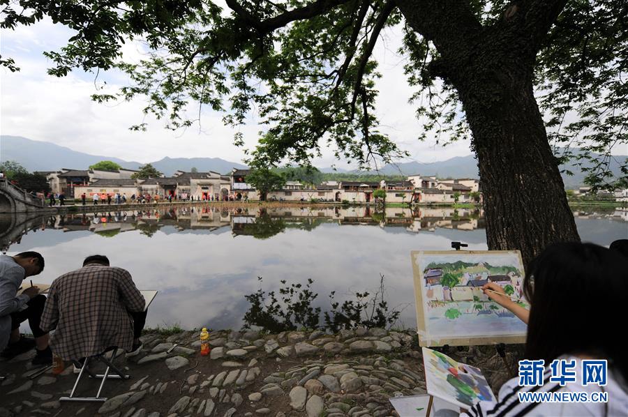 4月24日,繪畫愛好者在宏村風(fēng)景區(qū)寫生。新華社記者任鵬飛攝