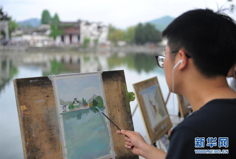 4月24日,繪畫愛(ài)好者在西遞風(fēng)景區(qū)寫生。新華社記者任鵬飛攝