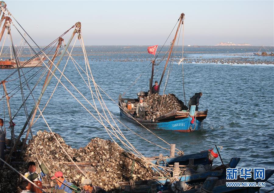 當(dāng)日,在遼寧省大連市長(zhǎng)??h廣鹿島海域,漁民忙碌地打撈牡蠣,呈現(xiàn)一片繁忙的豐收景象。近年來(lái),大連市持續(xù)加強(qiáng)海洋牧場(chǎng)建設(shè),目前已累計(jì)建設(shè)海洋牧場(chǎng)約36萬(wàn)公頃,投放各類魚(yú)礁約1578萬(wàn)平方米,建立國(guó)家級(jí)海洋牧場(chǎng)示范區(qū)14處。