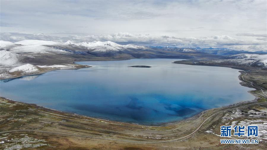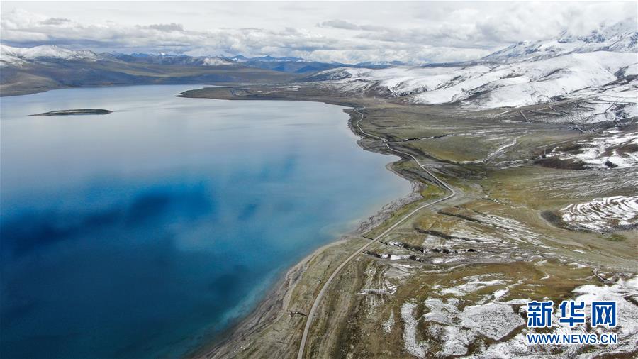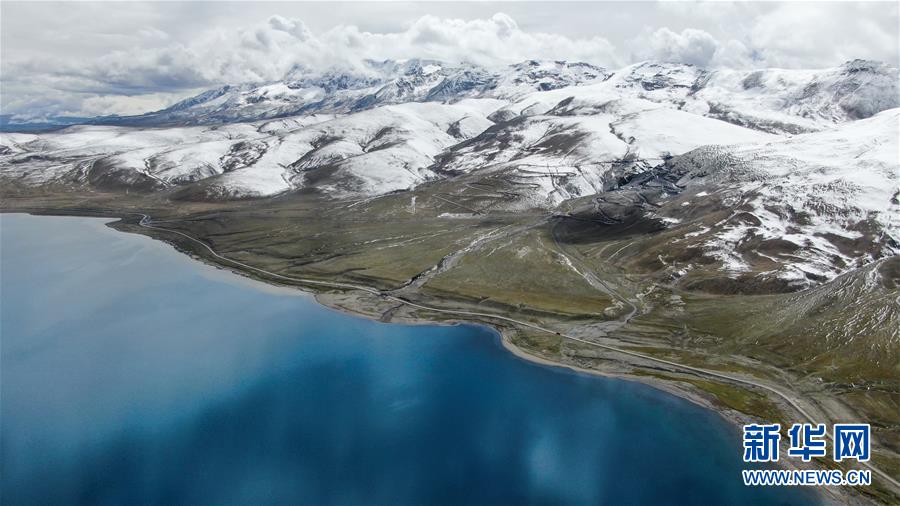 普姆雍錯(cuò)湖緊挨著公路,是自駕游的理想目的地(9月19日無人機(jī)拍攝)。新華社記者晉美多吉攝