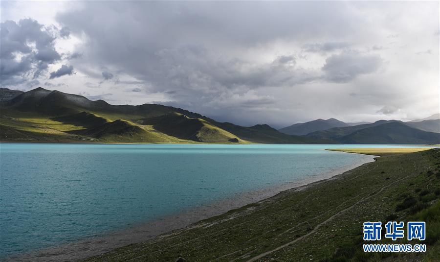 8月31日無人機拍攝的羊卓雍錯風(fēng)光。新華社記者晉美多吉攝