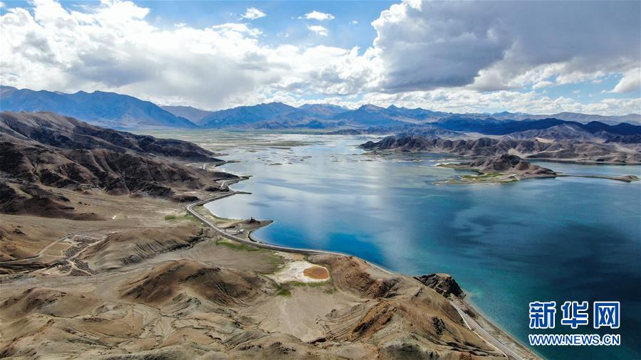 西藏阿里地區(qū)日土縣境內(nèi)的班公錯(8月3日無人機拍攝)。新華社記者晉美多吉攝