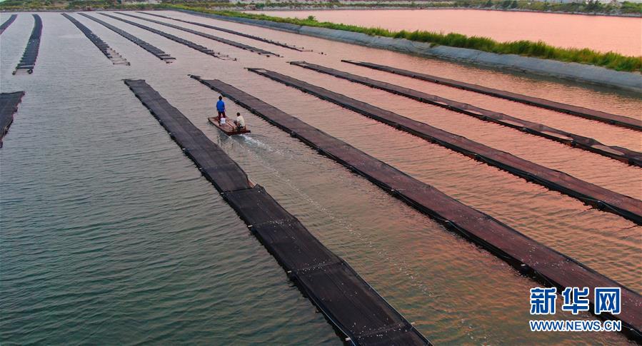 郭旗和愛人坐船查看海參養(yǎng)殖情況(9月5日無人機拍攝)。 新華社記者 楊青 攝