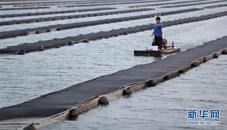 郭旗和愛人坐船查看海參養(yǎng)殖情況(9月5日攝)。 新華社記者 楊青 攝