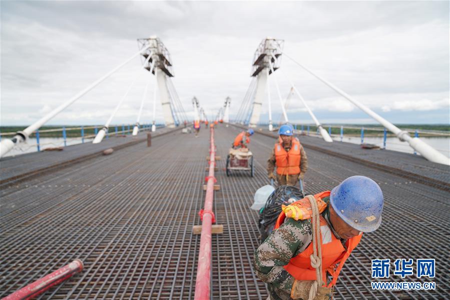 工人在大橋上進(jìn)行橋面鋪裝施工作業(yè)(8月19日攝)。新華社記者 王建威 攝